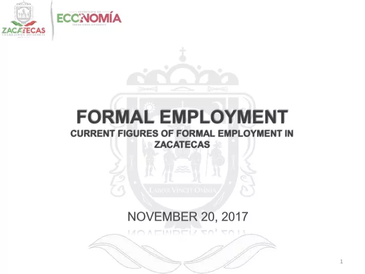 According to the figures from the Mexican Institute of Social Securiy (IMSS), by the date of October 31st, 2017 there were 175,393 job positions registered in the state of Zacatecas. In the period from September 2016 to October 2017, there were 7,880 new jobs generated in the state, equivalent to a variation rate of 4.7%, in the mentioned period. Figures relevant to the month of October, 2017 of the behavior of formal employment. Date with which there is comparison Variation in the absolutes in the creation and formalization of employment In relation to October 31st, 2016 6,394 (annually) In relation to September 30th, 2016 7,880 (13 months) In relation to January 1st, 2017 7,613 (10 months) In relation to September 30th, 2017 1,691(monthly) Source: Compilation from own elaboration, based on the figures of the Mexican Institute of Social Security, data consulted on date November 16, 2017. 2