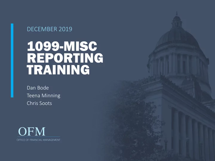 DECEMBER 2019 1099-MISC REPORTING TRAINING Dan Bode Teena Minning Chris Soots OFM OFFICE OF FINANCIAL MANAGEMENT
