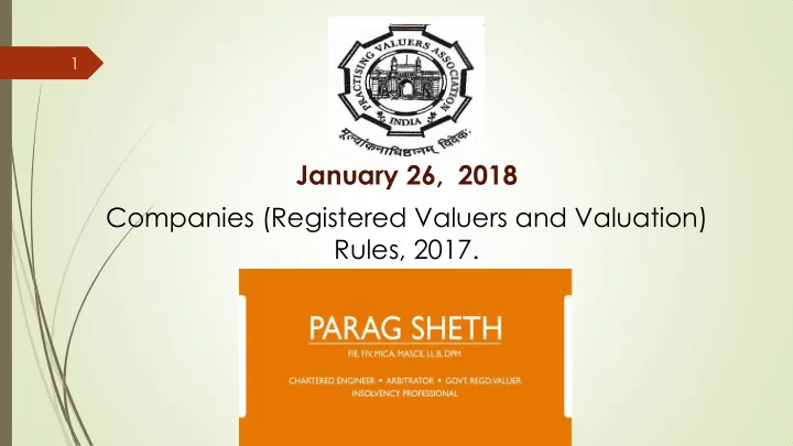 1 January 26, 2018 Companies (Registered Valuers and Valuation) Rules, 2017.