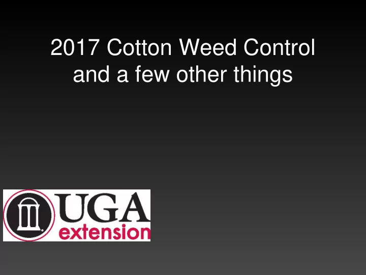 County Cotton Update Stanley Culpepper, University of Georgia, Tifton