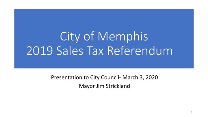 City of Memphis 2019 Sales Tax Referendum Presentation to City Council- March 3, 2020 Mayor Jim Strickland 1