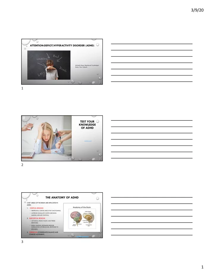 3/9/20 THE ANATOMY OF ADHD 4 EXECUTIVE FUNCTIONING Air Traffic Control 5 Kids, marshmallows and the psychology of self control 6 2