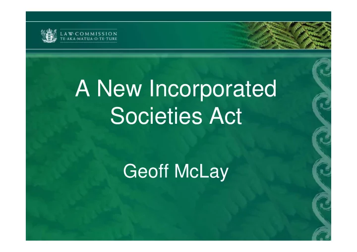 Inc Soc statute not alone ; • Charitable Trusts Act 1957, incorporation of a board • Industrial and Provident Society 1908 • Industrial and Provident Society 1908 • Agricultural and Pastoral Societies 1908 • Private statutes, sometimes deemed to be Inc Socs P i t t t t ti d d t b I S • Friendly Societies (not body corps)