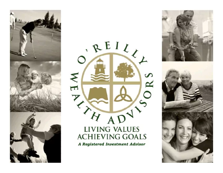 V IDEO #1 • Let’s begin with a video that demonstrates the difference between a broker (think Merrill Lynch, Morgan Stanley, UBS, etc.) and a fiduciary Registered Investment Advisor – think O’Reilly Wealth Advisors…. • https://goo.gl/lNUJ7