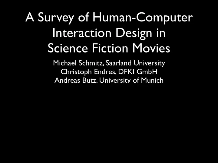 A Survey of Human-Computer Interaction Design in Science Fiction Movies Michael Schmitz, Saarland University Christoph Endres, DFKI GmbH Andreas Butz, University of Munich