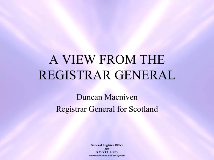 A VIEW FROM THE REGISTRAR GENERAL Duncan Macniven Registrar General for Scotland General Register Office for S C O T L A N D information about Scotland's people