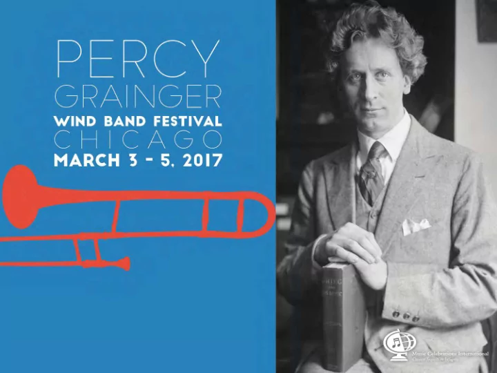 The 7th annual Percy Grainger Wind Band Festival will feature four outstanding wind ensembles conducting standalone performances of Percy Grainger literature in an afternoon matinee performance in Chicago’s Historic Orchestra Hall at Symphony Center. Each participating ensemble will also take part in a clinic with Col. Arnald D. Gabriel. All band selections are made through Music Celebrations, and every effort will be made to ensure that each ensemble’s program will not overlap onto one another. Ensembles will be accepted on a first-come, first-serve, rolling basis. Early applicants are given preference and priority.