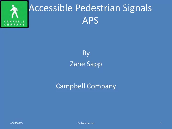 Accessible Pedestrian Signals APS By Zane Sapp Campbell Company 4/29/2015 Pedsafety.com 1