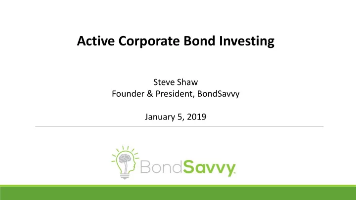 Active Corporate Bond Investing Steve Shaw Founder & President, BondSavvy January 5, 2019