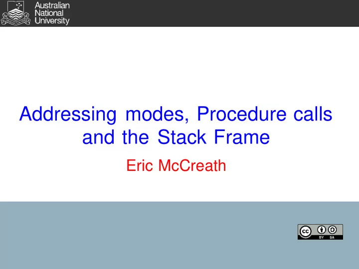 Addressing modes, Procedure calls and the Stack Frame��� Eric McCreath