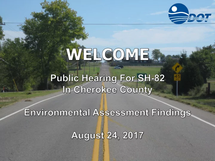 Purpose of the Public Hearing Provide a Project Overview Review Alternatives Discuss Agency and Public Involvement Discuss Preliminary Social, Economic and Environmental Impacts Provide Opportunities to Comment N Gideon Tahlequah