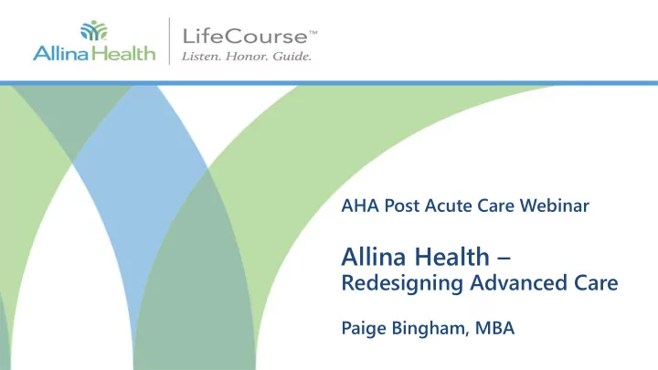 AHA Post Acute Care Webinar Allina Health – Redesigning Advanced Care Paige Bingham, MBA