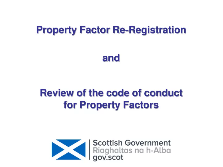 Property Factor Re-Registration and Review of the code of conduct for Property Factors
