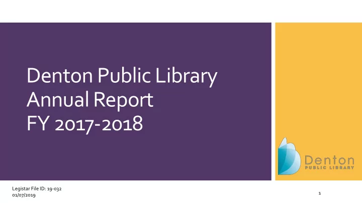 Denton Public Library Annual Report FY 2017-2018 Legistar File ID: 19-032 1 01/07/2019