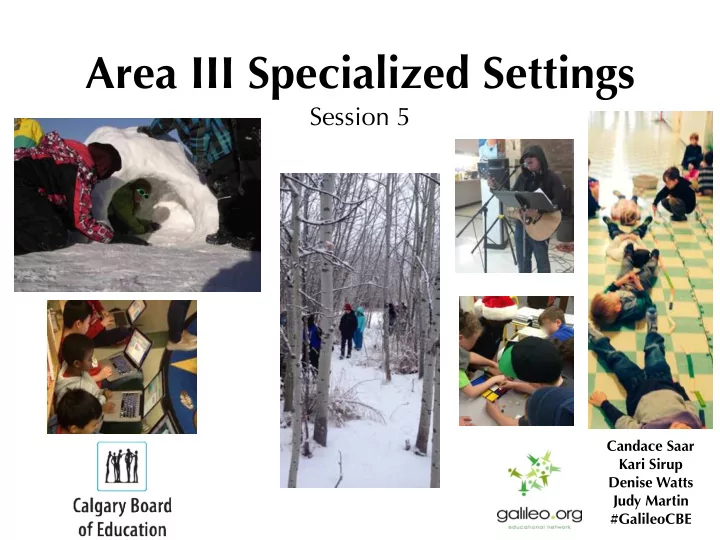 Area III Specialized Settings Session 5 Candace Saar Kari Sirup Denise Watts Judy Martin #GalileoCBE