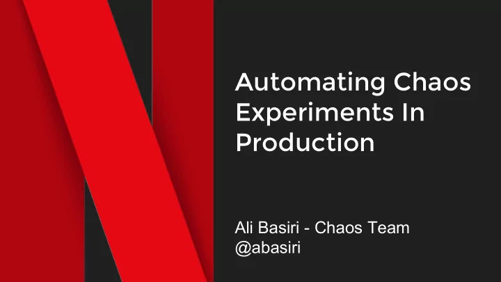 Automating Chaos Experiments In Production Ali Basiri - Chaos Team @abasiri