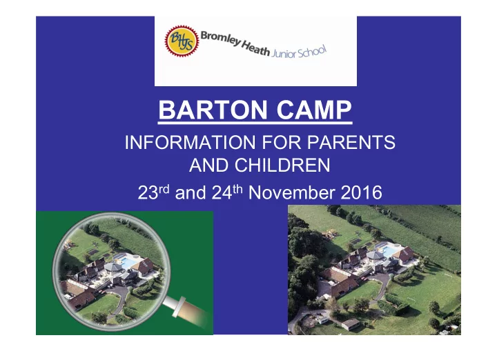 BARTON CAMP INFORMATION FOR PARENTS AND CHILDREN 23 rd and 24 th November 2016