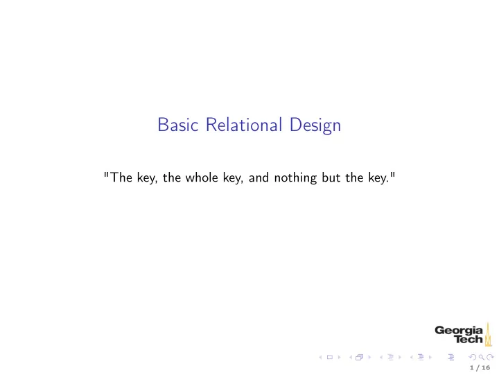 Basic Relational Design "The key, the whole key, and nothing but the key." 1 / 16