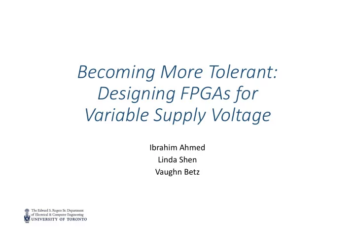 Becoming More Tolerant: Designing FPGAs for Variable Supply Voltage Ibrahim Ahmed Linda Shen Vaughn Betz