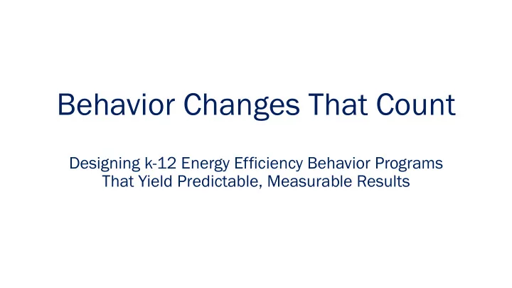 Behavior Changes That Count Designing k-12 Energy Efficiency Behavior Programs That Yield Predictable, Measurable Results