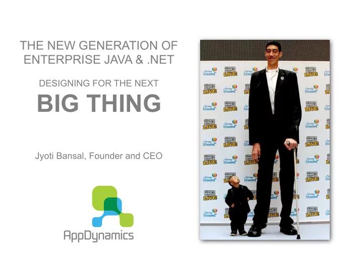 THE NEW GENERATION OF ENTERPRISE JAVA & .NET DESIGNING FOR THE NEXT BIG THING Jyoti Bansal, Founder and CEO