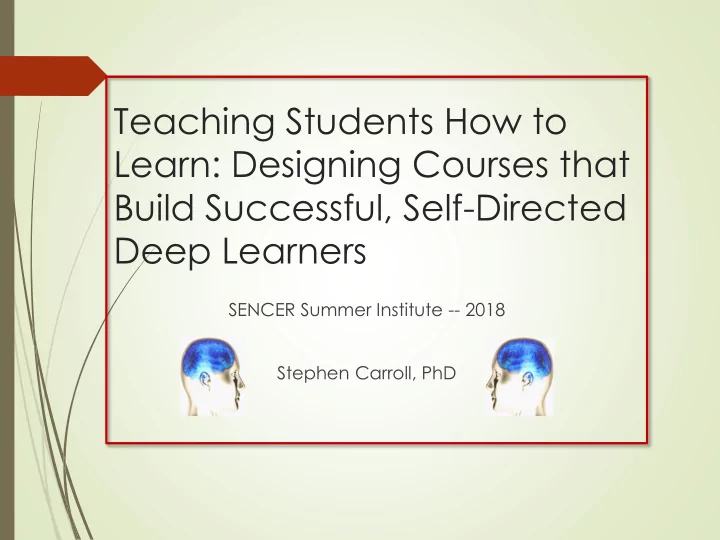 Teaching Students How to Learn: Designing Courses that Build Successful, Self-Directed Deep Learners SENCER Summer Institute -- 2018 Stephen Carroll, PhD