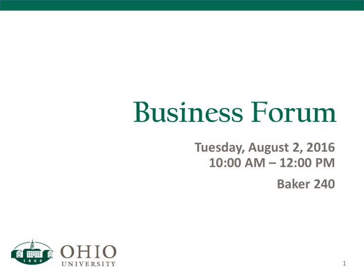 Business Forum Tuesday, August 2, 2016 10:00 AM – 12:00 PM Baker 240 1