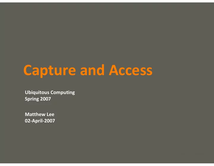 Capture and Access Ubiquitous Computing Spring 2007 Matthew Lee 02-April-2007 your name