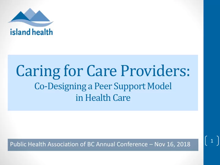 Caring for Care Providers: Co-Designing a Peer Support Model in Health Care 1 Public Health Association of BC Annual Conference – Nov 16, 2018