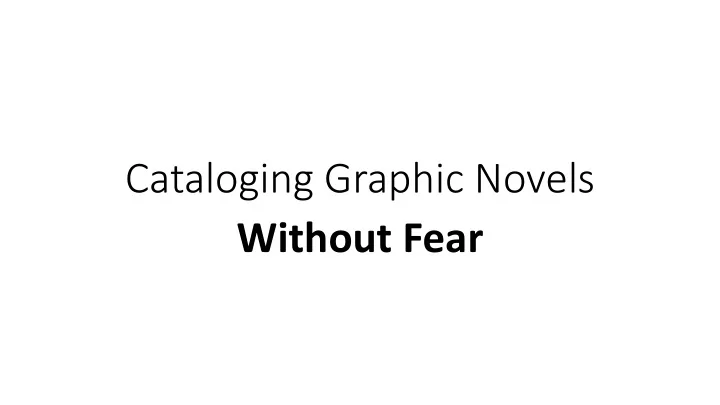 How is cataloging a graphic novel different from cataloging other kinds of print material? • Much of the process of cataloging graphic novels is the same as the process for cataloging any print material. However, some fields do require slightly different approaches for graphic novels. • We are going to talk about the fields in a bibliographic record that are specifically affected when cataloging a graphic novel. • If we don’t mention a field, treat that field as you would for any print material.