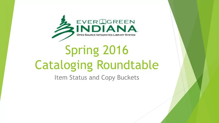 Spring 2016 Cataloging Roundtable Item Status and Copy Buckets