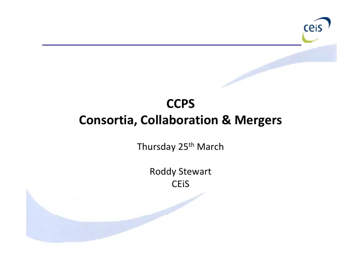 CCPS Consortia, Collaboration & Mergers Thursday 25 th March Roddy Stewart CEiS CEiS