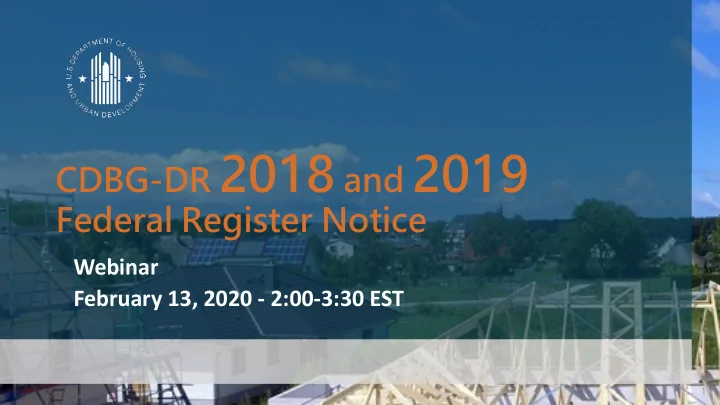 CDBG-DR 2018 and 2019 Federal Register Notice Webinar February 13, 2020 - 2:00-3:30 EST 1 2018 and 2019 Disasters 1