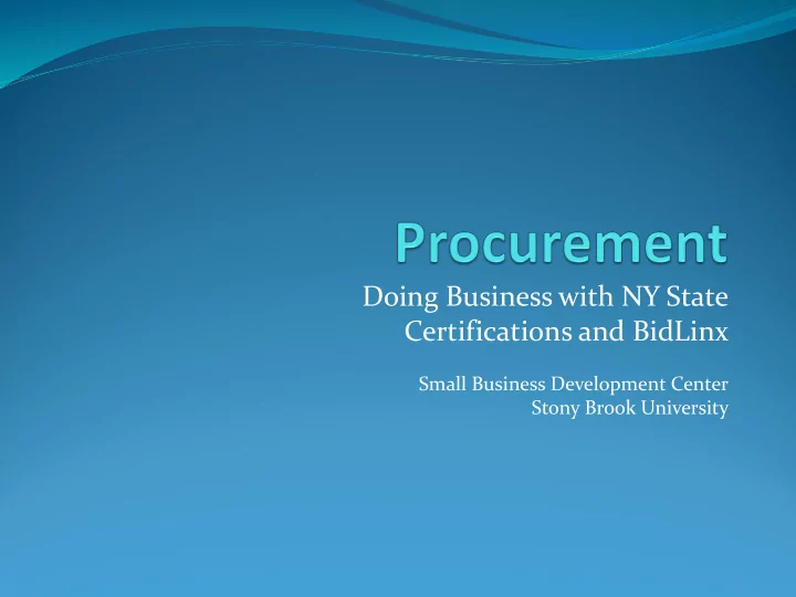 Doing Business with NY State Certifications and BidLinx Small Business Development Center Stony Brook University