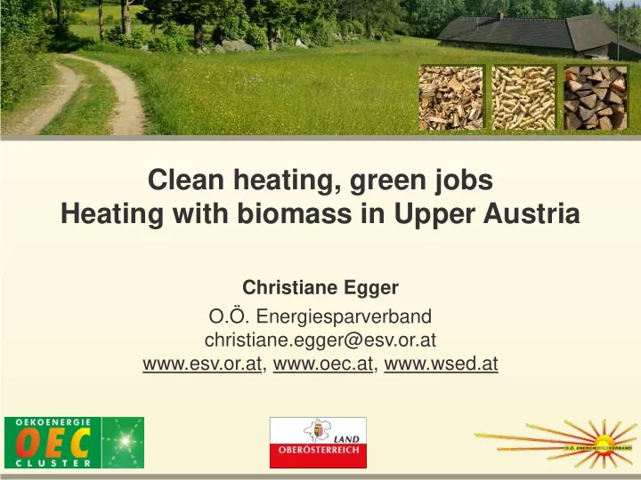 Clean heating, green jobs Heating with biomass in Upper Austria Christiane Egger O.Ö. Energiesparverband christiane.egger@esv.or.at www.esv.or.at, www.oec.at, www.wsed.at