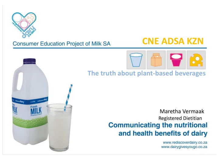 CNE ADSA KZN The truth about plant-based beverages Maretha Vermaak Registered Dietitian