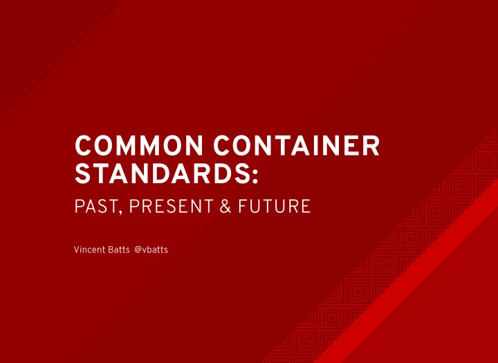 COMMON CONTAINER STANDARDS: PAST, PRESENT & FUTURE Vincent Batts @vbatts