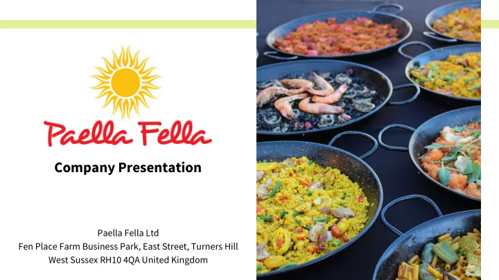 Company Presentation Paella Fella Ltd Fen Place Farm Business Park, East Street, Turners Hill West Sussex RH10 4QA United Kingdom
