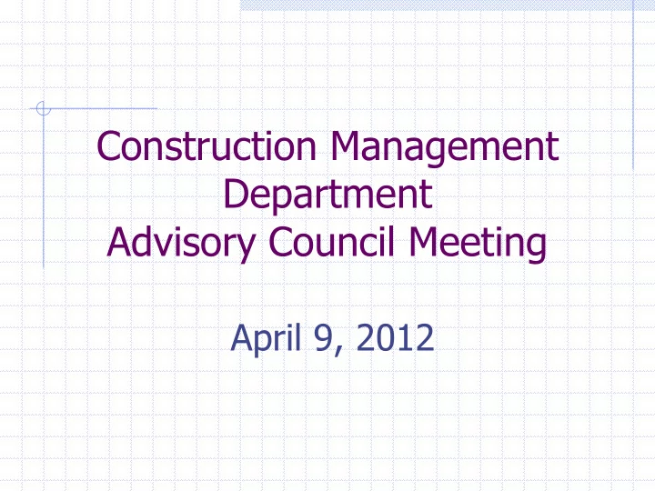 Construction Management Department Advisory Council Meeting April 9, 2012