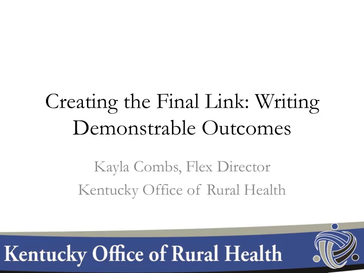 Creating the Final Link: Writing Demonstrable Outcomes Kayla Combs, Flex Director Kentucky Office of Rural Health