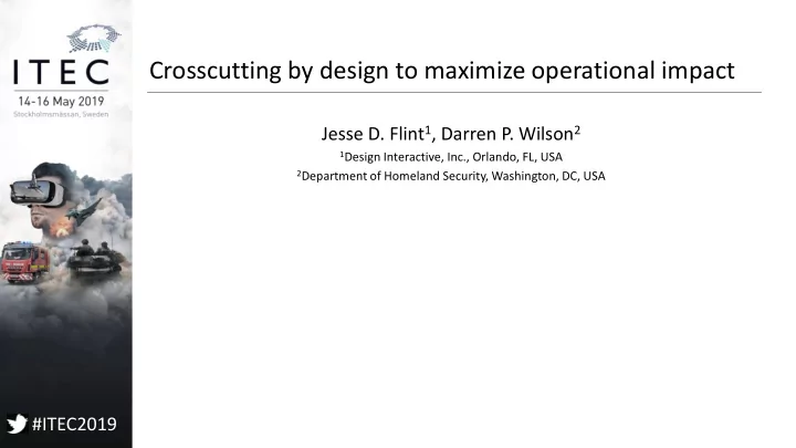 Crosscutting by design to maximize operational impact Jesse D. Flint 1 , Darren P. Wilson 2 1 Design Interactive, Inc., Orlando, FL, USA 2 Department of Homeland Security, Washington, DC, USA #ITEC2019