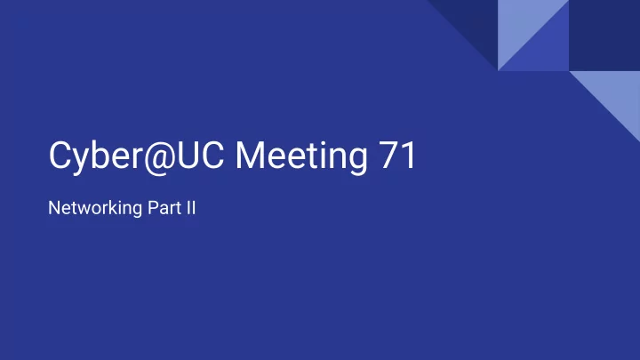 If You’re New! ● Join our Slack: cyberatuc.slack.com (URL changed!) SIGN IN! (Slackbot will post the link in #general every Wed@6:30) ● Feel free to get involved with one of our committees: ● Content Finance Public Affairs Outreach Recruitment ● Ongoing Projects: Research lab! ○