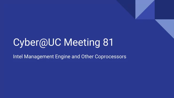 Cyber@UC Meeting 81 Intel Management Engine and Other Coprocessors