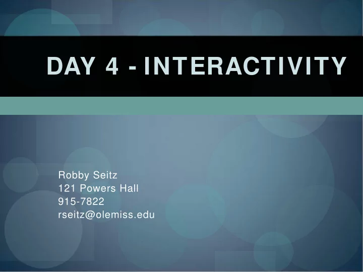 DAY 4 - INTERACTIVITY Robby Seitz 121 Powers Hall 915-7822 rseitz@olemiss.edu
