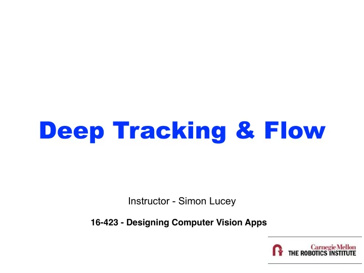 Deep Tracking & Flow Instructor - Simon Lucey 16-423 - Designing Computer Vision Apps