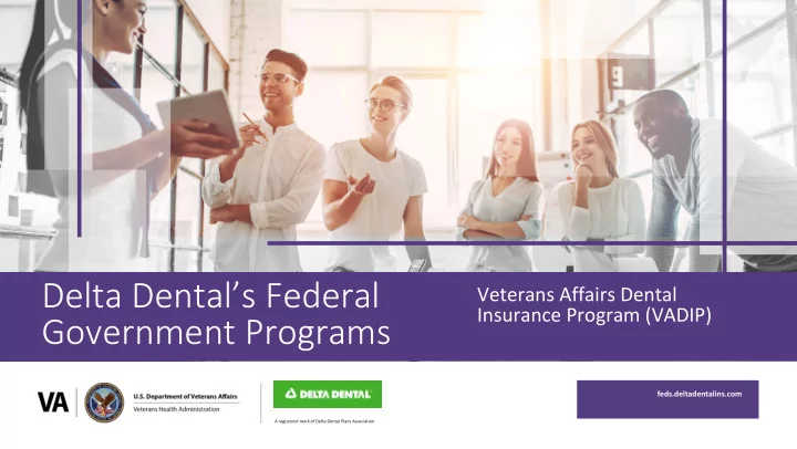 Delta Dental’s Federal Veterans Affairs Dental Insurance Program (VADIP) Government Programs feds.deltadentalins.com A registered mark of Delta Dental Plans Association