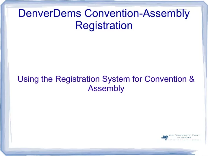 DenverDems Convention-Assembly Registration Using the Registration System for Convention & Assembly