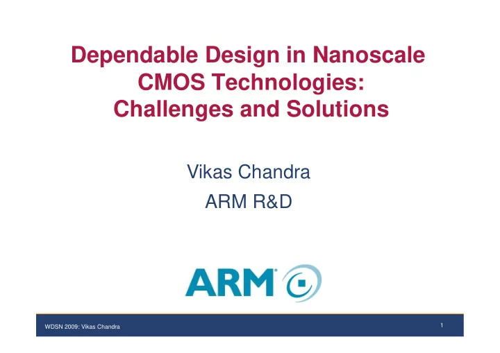 Dependable Design in Nanoscale CMOS Technologies: Challenges and Solutions Vikas Chandra ARM R&D 1 WDSN 2009: Vikas Chandra