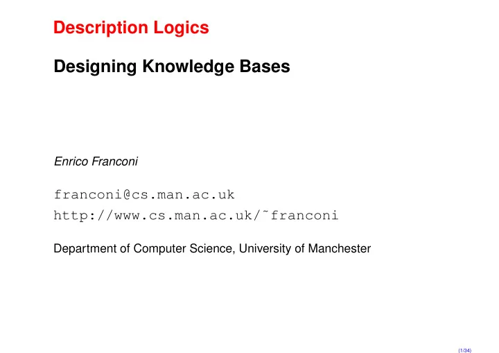 Description Logics Designing Knowledge Bases Enrico Franconi franconi@cs.man.ac.uk http://www.cs.man.ac.uk/˜franconi Department of Computer Science, University of Manchester (1/34)