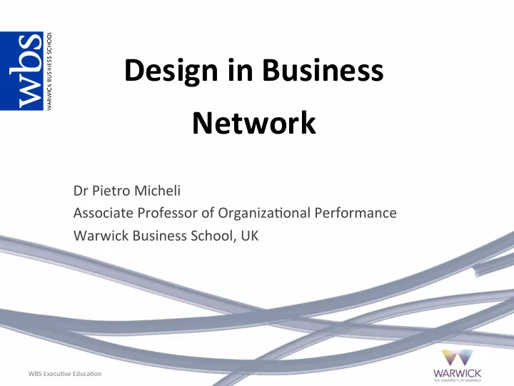Design in Business Network Dr Pietro Micheli Associate Professor of Organiza*onal Performance Warwick Business School, UK WBS Execu*ve Educa*on